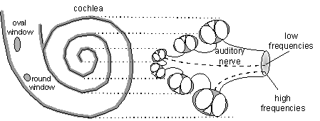 center (see Figure 1). This structure of the auditory nerve is called tonotopic